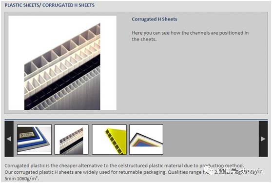 塑料中空板(也叫中空隔子板、万通板、双壁板、瓦楞板)采用现代化工HDPE和HDPP材料,是一种重量轻(空心结构)、无毒、无污染、防水、防震、抗老化、耐腐蚀、颜色丰富的新型材料,相比于纸板结构产品,中空板具有防潮、抗腐蚀、更轻便等优势来代替纸板。相比于注塑产品,中空板具有防震、可灵活设计结构,不需开注塑模具等优势。同时,该板材可通过原料的控制灵活的加入防静电、导电母料等,生产出具有导电、防静电功能的塑料中空板板材,防静电板材表面电阻率可控制在103~1011之间。塑料中空板无毒、无味、防潮、耐腐蚀、重量轻,外观华丽颜色丰富、纯正等特点。厚度2-12mm居多,宽度2300 mm(看设备门幅)、周转箱、折叠箱、刀卡、托盘等。可按客户要求做成防静电、导电等尺寸、款式不同的产品。中空板制品是采用聚丙烯原料挤出成型,是一种新型结构材料。具有质轻、坚韧、无毒无味、美观、抗压、防潮、外形平整、耐油污等特点。材料性能稳定、不易老化,是符合新世纪要求的优良替代包装材料。中空板制品可循环使用,以降低包装运输成本。不良品可维修养护,报废品可回收再造。广泛适用于电子、五金、广告、物流、医药等行业。本文主要介绍板材的结构,在其他章节将单独介绍板材的属性特点。一.蜂窝型结构,市场也有双层蜂窝板,其抗压强度、弯曲强度等综合性能比较优越,以后将是主流板材。用于内衬:厚度一般小于5mm、克重1200g以内的较常用;用于大型塑料围板箱:厚度在10mm以上(12mm左右)、克重在3000~3500g。二.H型结构,市场还有弯曲的” H型结构”像”S”,目前H型结构是市场上最多最常见的板材,主要用于内衬和小中空板箱子,厚度在2~7mm之间用的较多,通常克重在300~1800g(根据实际设计需要选择克重和厚度)